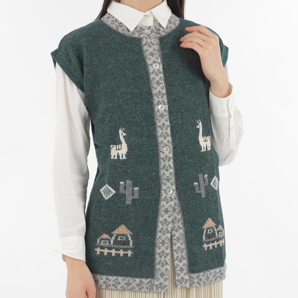 〈アンデスのぬくもり 華やぎのアラベスク〉五泉ニットの絣糸編みあったかチュニックベスト