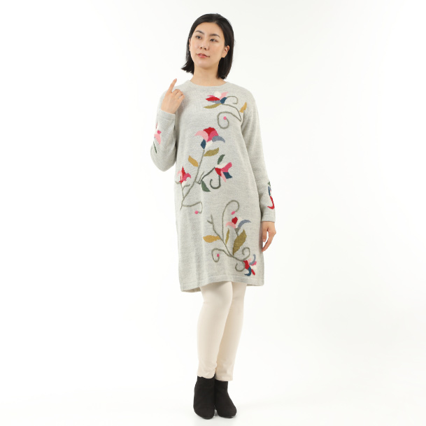 ベビーアルパカ100%の極上の肌ざわりに、熟練の職人技が光る刺しゅうとインターシャ編みを添えて、草花モチーフを優雅に表現した一着。カシミヤを凌ぐとも言われる高い保温性と、驚くほど軽やかな着心地で、冬の日も心地よく包み込んでくれます。ふんわりと体を包むシルエットは、寒さを忘れるほどのあたたかさ。エレガントで上品なデザインに仕上げた、贅沢なベビーアルパカ100%ワンピース。数量限定でのご紹介です。