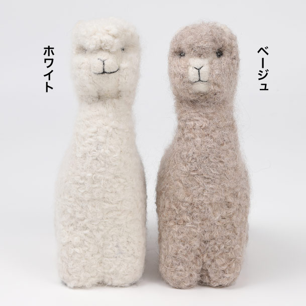 標高4,000~5,000mのペルー高地で育まれたアルパカ毛、なかでも稀少なベビーアルパカを使用した手作りの人形。ひとつひとつ異なる表情が魅力で、飾るだけで癒しと幸せを感じられます。ベビーアルパカならではのふわふわとした触り心地が、日々の心の休息に寄り添います。
