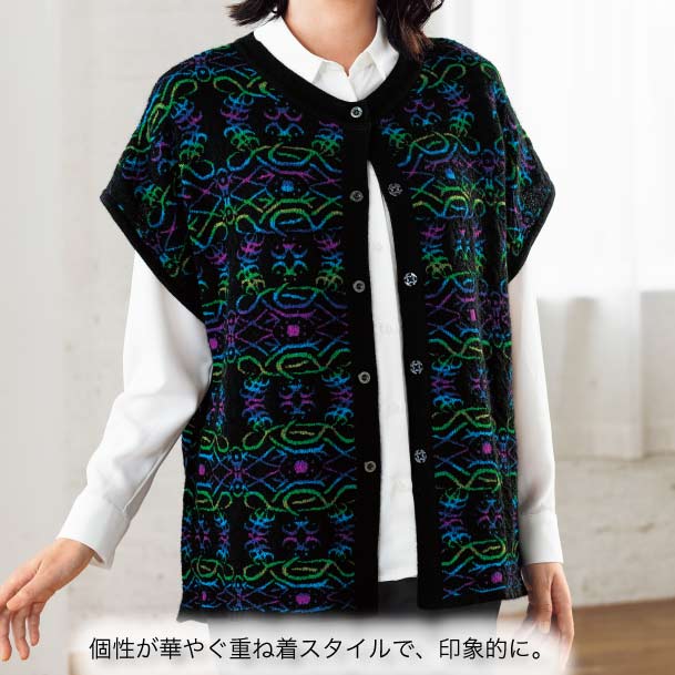 アンデスのぬくもり 五泉ニット絣糸編みベスト