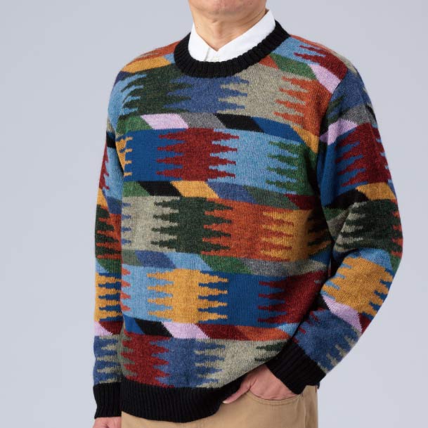 アルパカの毛で編んだ色彩豊かなセーター。アンデス山脈など海抜4000〜5000メートルの高地に生息するアルパカの毛は、なめらかで軽く、保温性や耐久性にも優れています。着心地もさることながら、着るだけで若々しい印象を与える一着です。