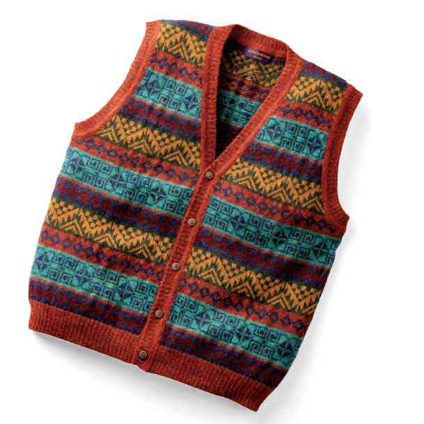 アルパカ100% 幾何柄多色使いベスト