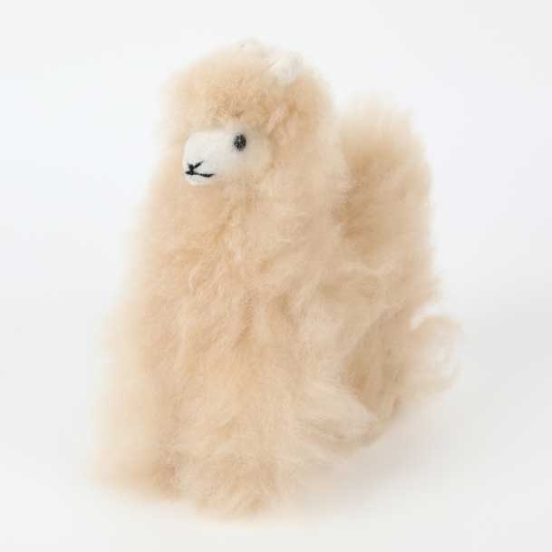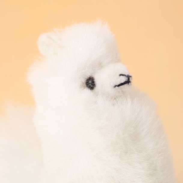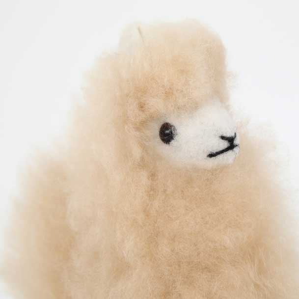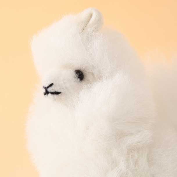 ●サイズ(約):幅7×奥行15×高さ18cm ●重量(約):80g ●材質:表面=ベビーアルパカ毛皮、プラスチック(目の部分) ●ペルー製