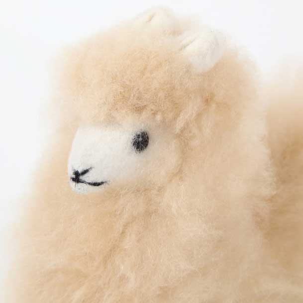 ふわふわの毛並み、愛くるしい表情……。南米ペルーの高地に生息するアルパカが、ほんわかと心を癒すぬいぐるみになりました。人懐っこい表情を浮かべて、のんびり遠くを見つめるつぶらな瞳。ペルーの職人がひとつひとつ手作業で作ったこだわりの品だから、顔の表情は微妙に異なりひとつとして同じものは作られません。うっとりするほどやさしいぬくもりを誇るベビーアルパカ毛の肌触りはまさに極上。お子様はもちろん、大人をも幸せにしてくれる触り心地です。