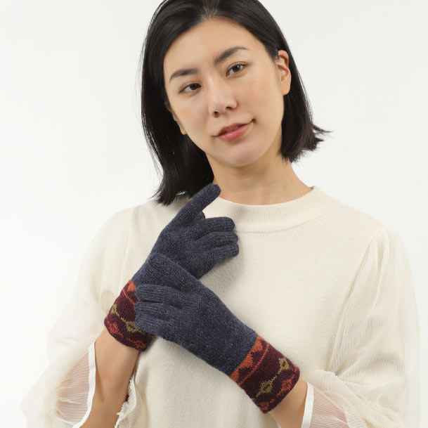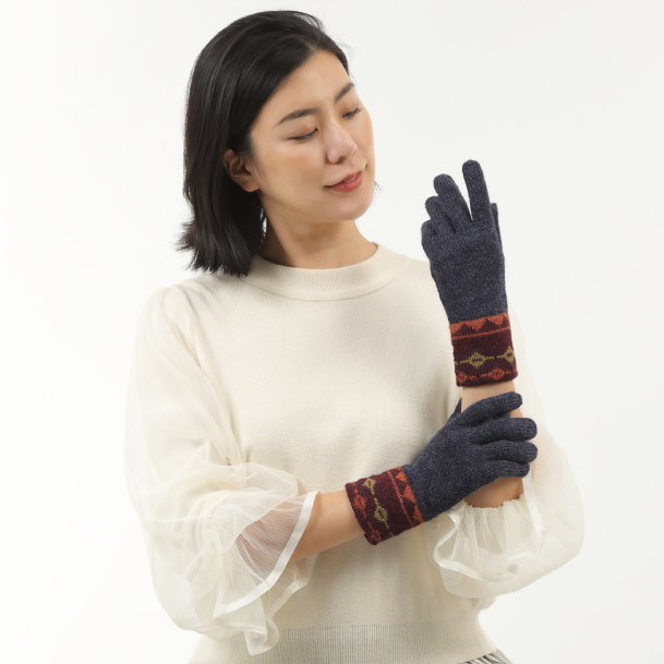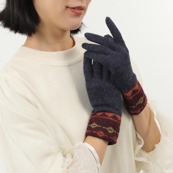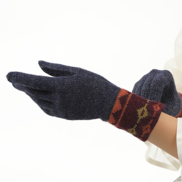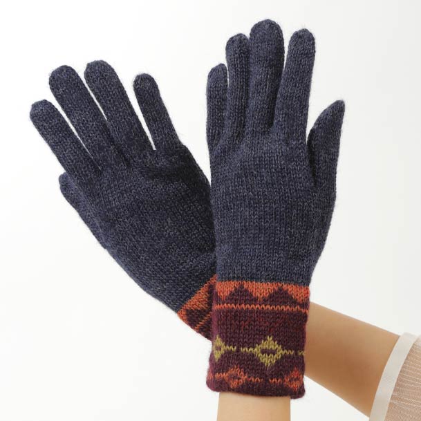 手を入れてしばらくすると温もりに包まれるのは、アルパカの毛一本一本のなかに細かい空洞があり、体温で暖められた空気を溜めこんでくれるから。大自然に育まれた稀少なペルー産のアルパカ毛を100%使用したこちらの手袋は、軽くて柔らかく、耐久性もあり毛玉がでにくいというアパレル繊維の理想的な特徴をもつ高級素材です。高級感のあるブルー地にインカ伝統柄をミックスした上品なデザインもおすすめポイントです。
