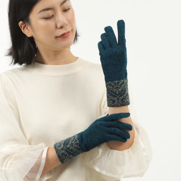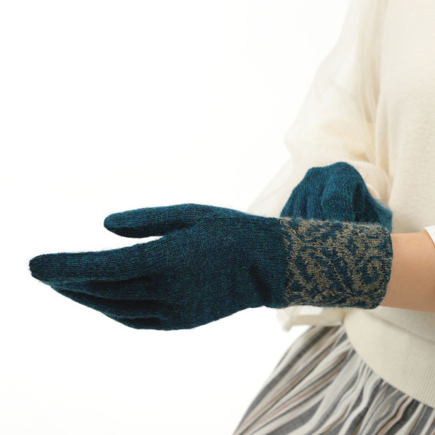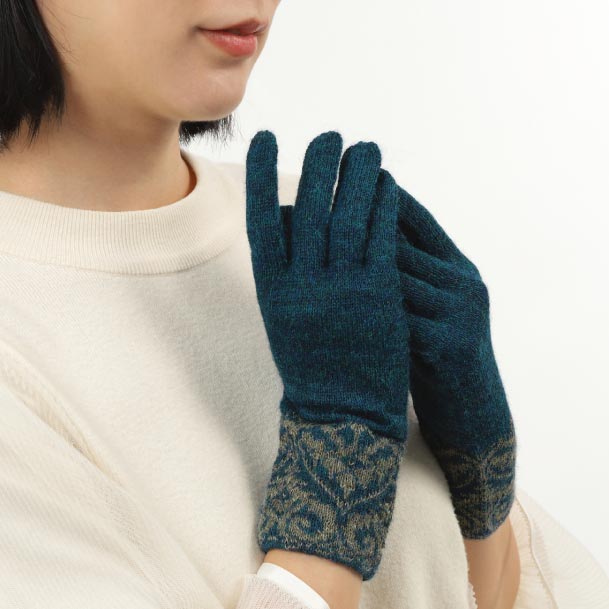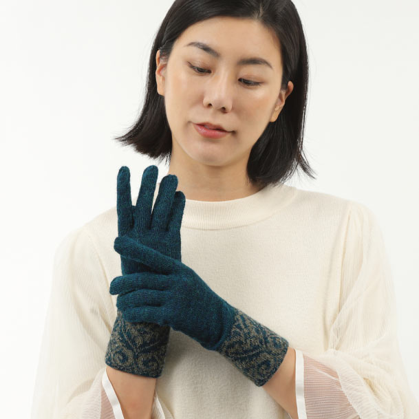 指先がかじかむような寒さにも強いのは、高級アルパカ素材を100%採用しているから。アルパカの毛一本一本のなかに細かい空洞があり、体温で暖められた空気を溜めこんでくれるので、高い保温性を発揮してくれます。さらに、軽くて柔らかく、耐久性もあり毛玉ができにくいので、消耗しやすい手袋でも長期に渡って愛用することが可能です。ブルーグリーン地にアンデス伝統の幾何学を配した高級感のあるデザインもおすすめポイントです。